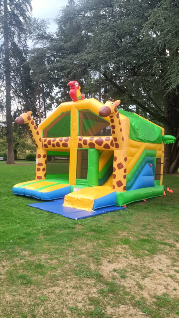 Structure gonflable « La Girafe » – Une aventure XXL pleine de rebondissements !